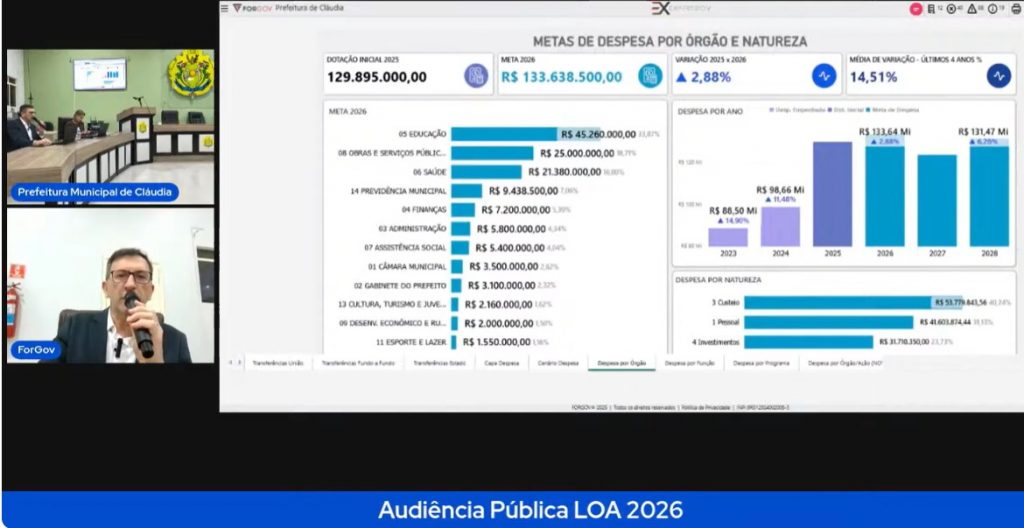 Na manhã desta quarta-feira (17/09), às 9h, a Prefeitura de Cláudia realizou audiência pública para apresentação e discussão da proposta da Lei Orçamentária Anual (LOA) de 2026. A LOA é o instrumento que detalha quanto o município prevê arrecadar e como os recursos serão aplicados ao longo do próximo ano, orientando a execução das políticas […]