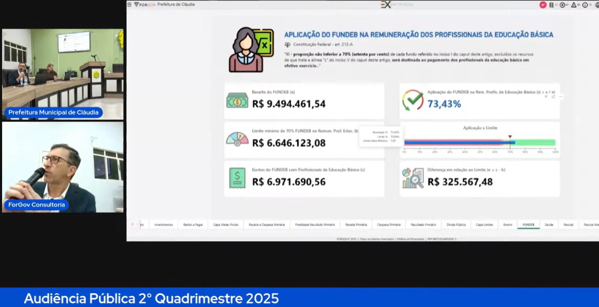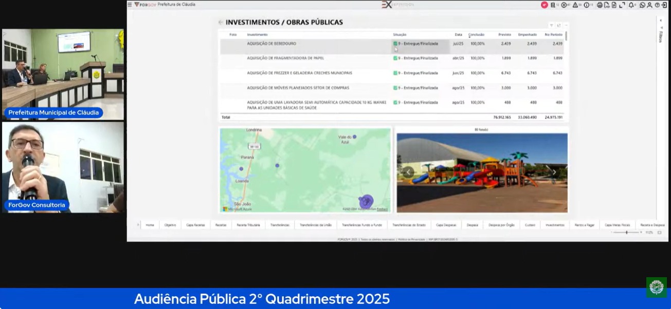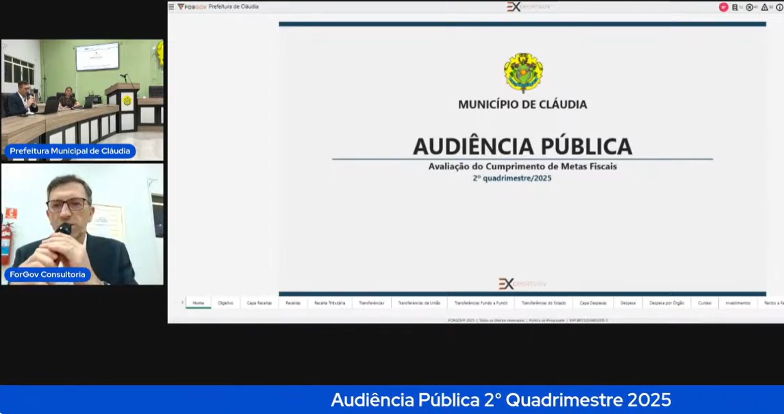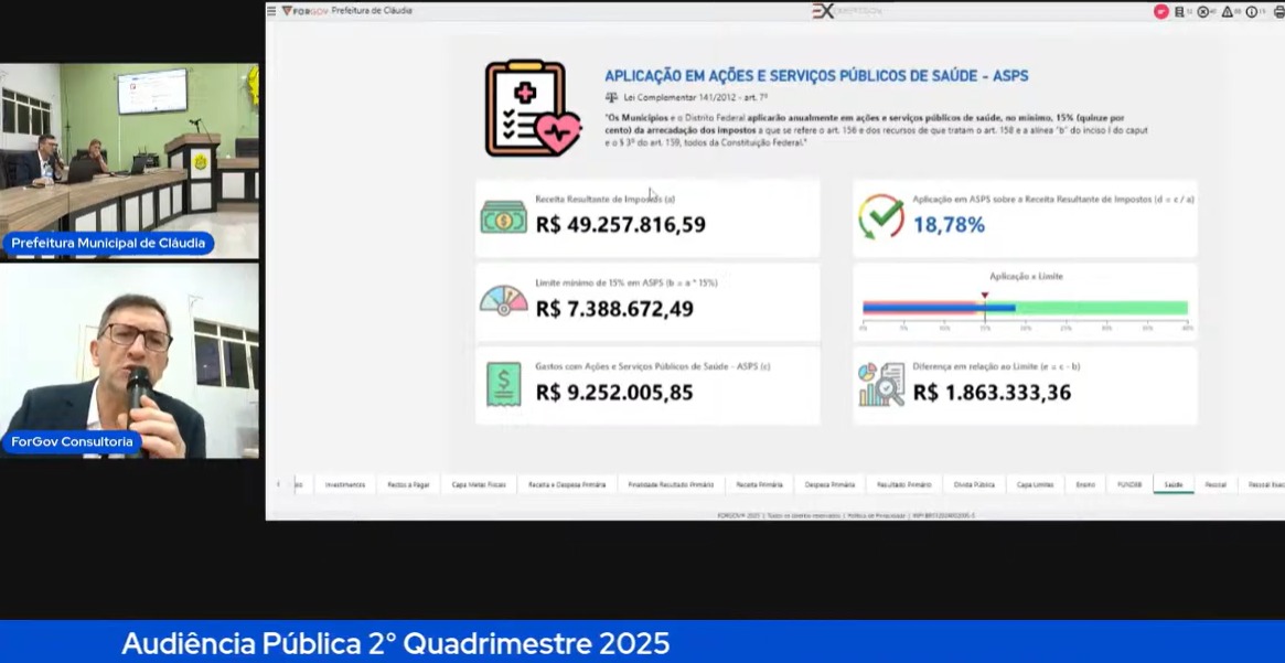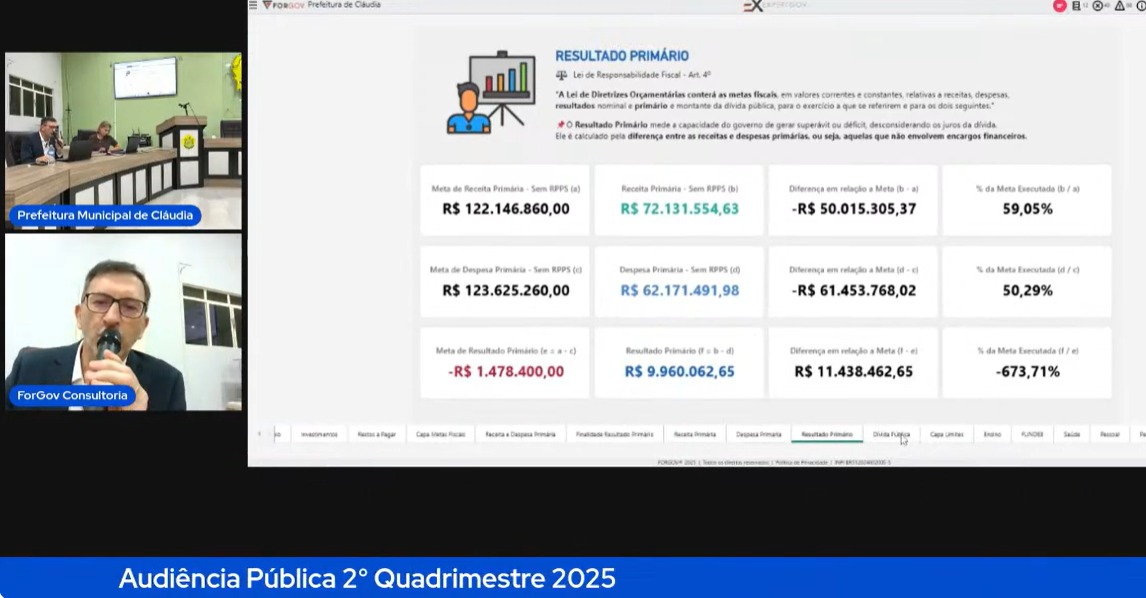 Ainda no dia 17/09, às 10h, foi realizada a audiência pública de avaliação do cumprimento das metas fiscais referentes ao 2º quadrimestre de 2025, em conformidade com a Lei de Responsabilidade Fiscal (LRF).
