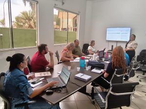 Estiveram presentes na oficina os representantes do Sebrae — Fabiola, Alberto e Amanda — que apoiam a execução do projeto no município; o secretário de Meio Ambiente, Ricardo; a secretária de Educação, Claudevania; a secretária de Planejamento, Orçamento e Gestão, Ana Paula; além de Ed Gomes, Edson e Camily, representantes da Secretaria de Saúde; Diana, representante da Secretaria de Assistência Social; e Mari, bióloga do município.