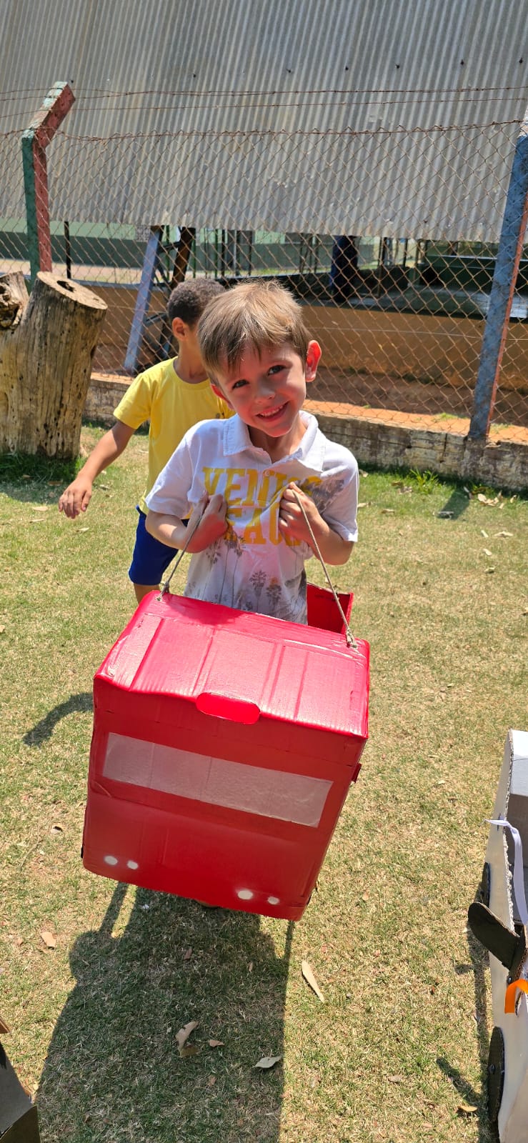 A Escola Municipal Daniel Titton, da Educação Infantil, realizou nesta semana uma atividade encantadora: a apresentação dos veículos confeccionados em papelão pelas crianças e suas famílias.