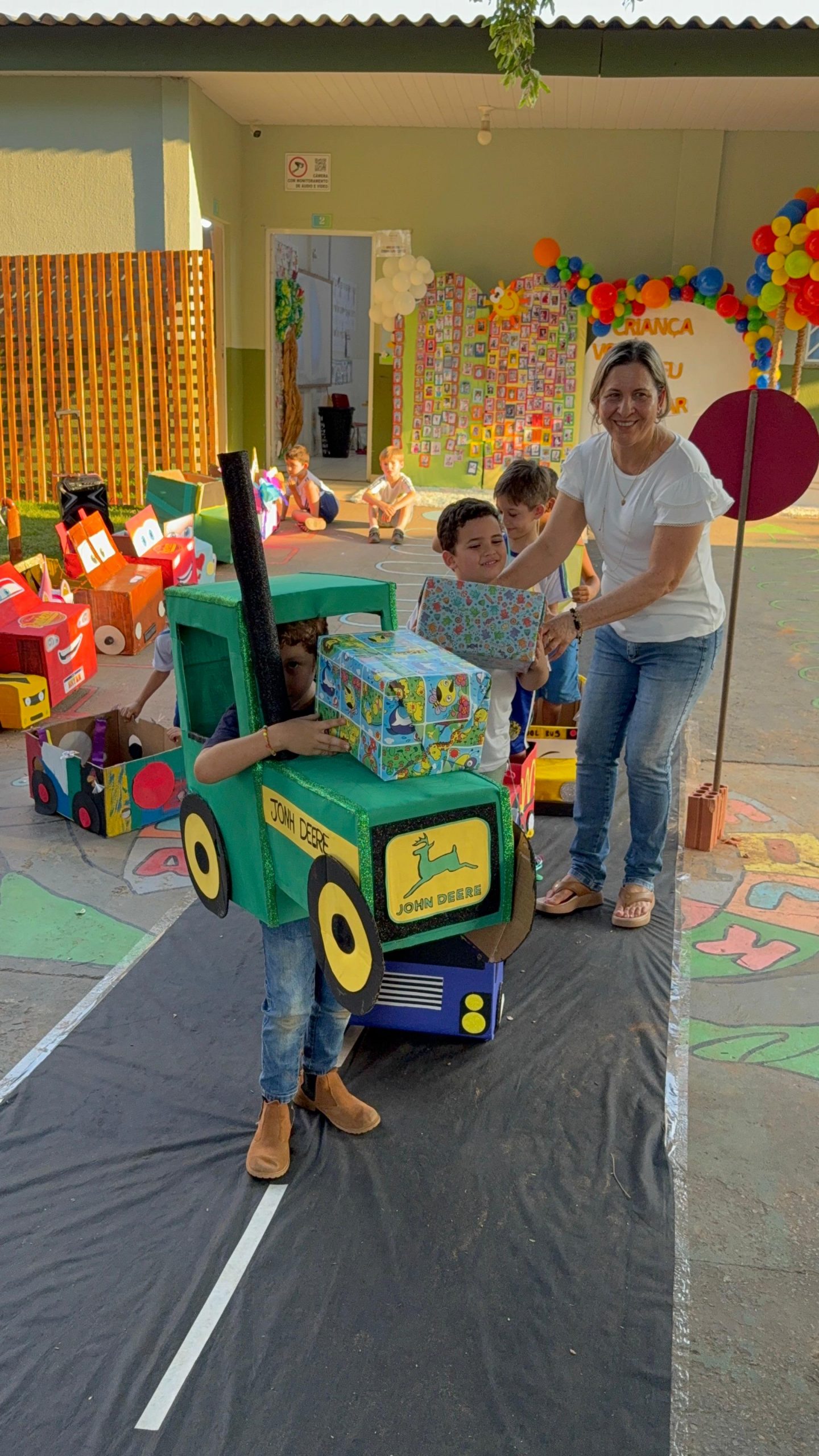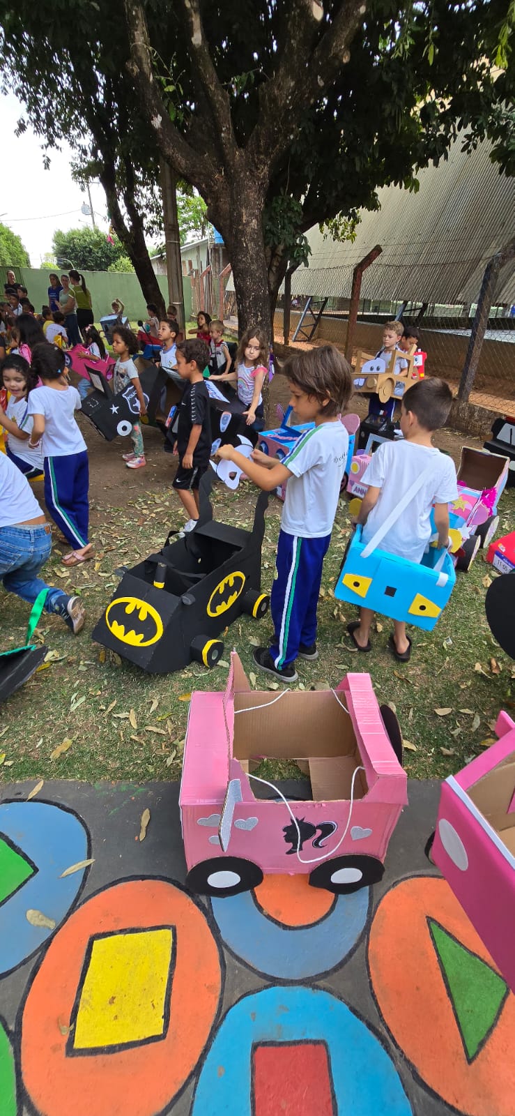 O envolvimento das famílias foi um dos grandes destaques do projeto. Pais, mães e responsáveis participaram ativamente da confecção dos veículos, transformando caixas de papelão em verdadeiras obras de arte sobre rodas. Esse momento de cooperação e criatividade reforça a importância da participação da família na vida escolar, pilar essencial para o desenvolvimento integral das crianças.